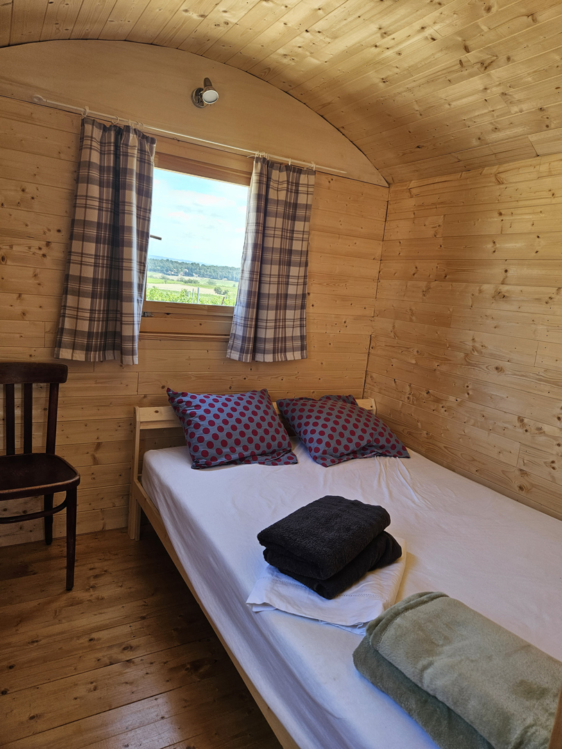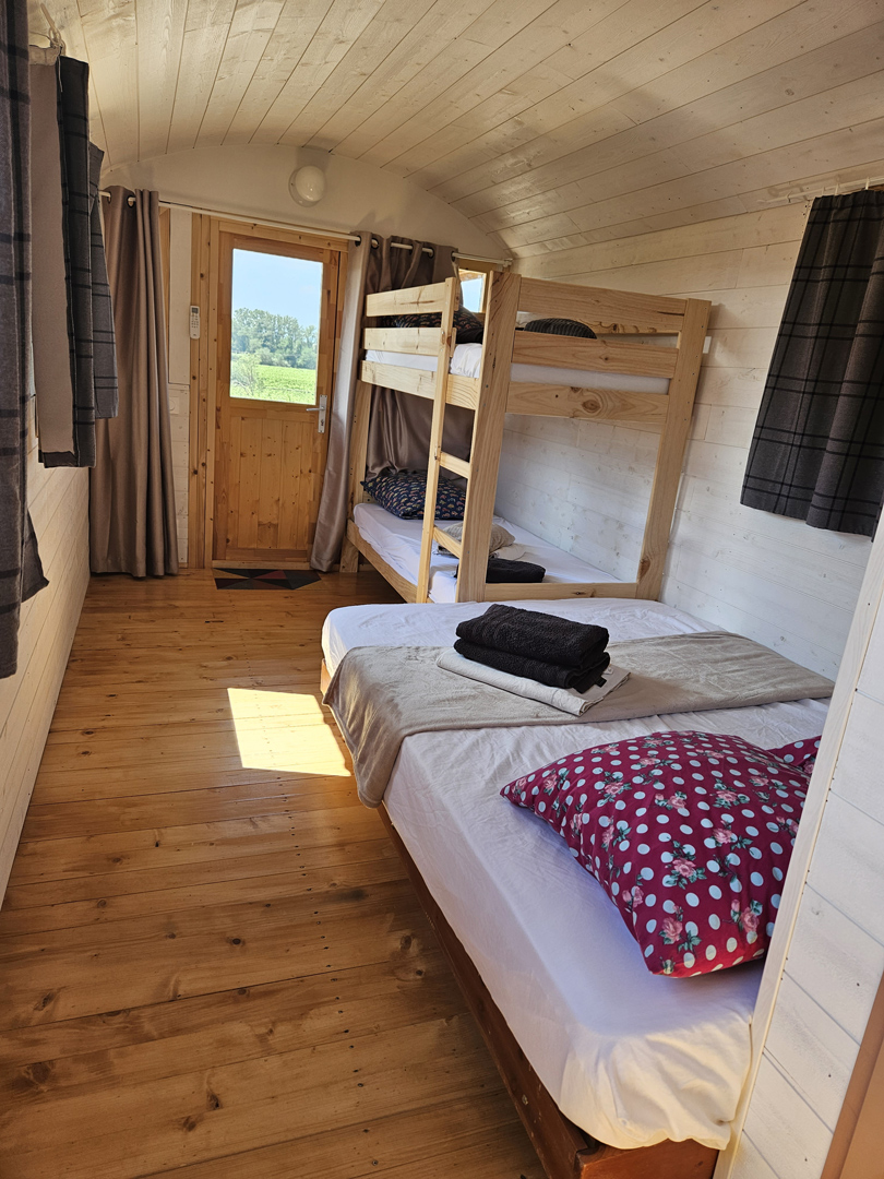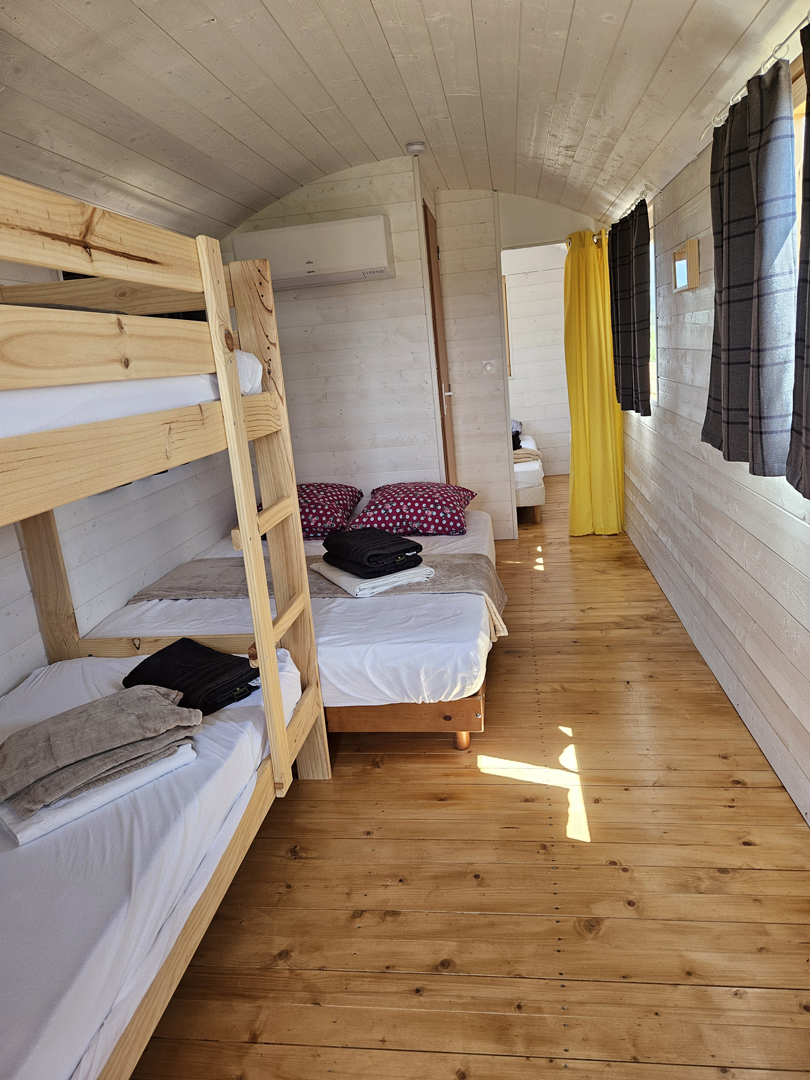 Vivez une expérience unique avec nos 4 roulottes climatisées, pouvant accueillir jusqu’à 24 personnes au total.