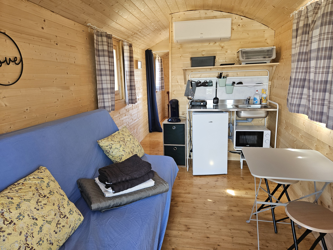 Chaque roulotte est entièrement équipée pour offrir à vos invités une nuit paisible et conviviale, dans une ambiance chaleureuse et originale.